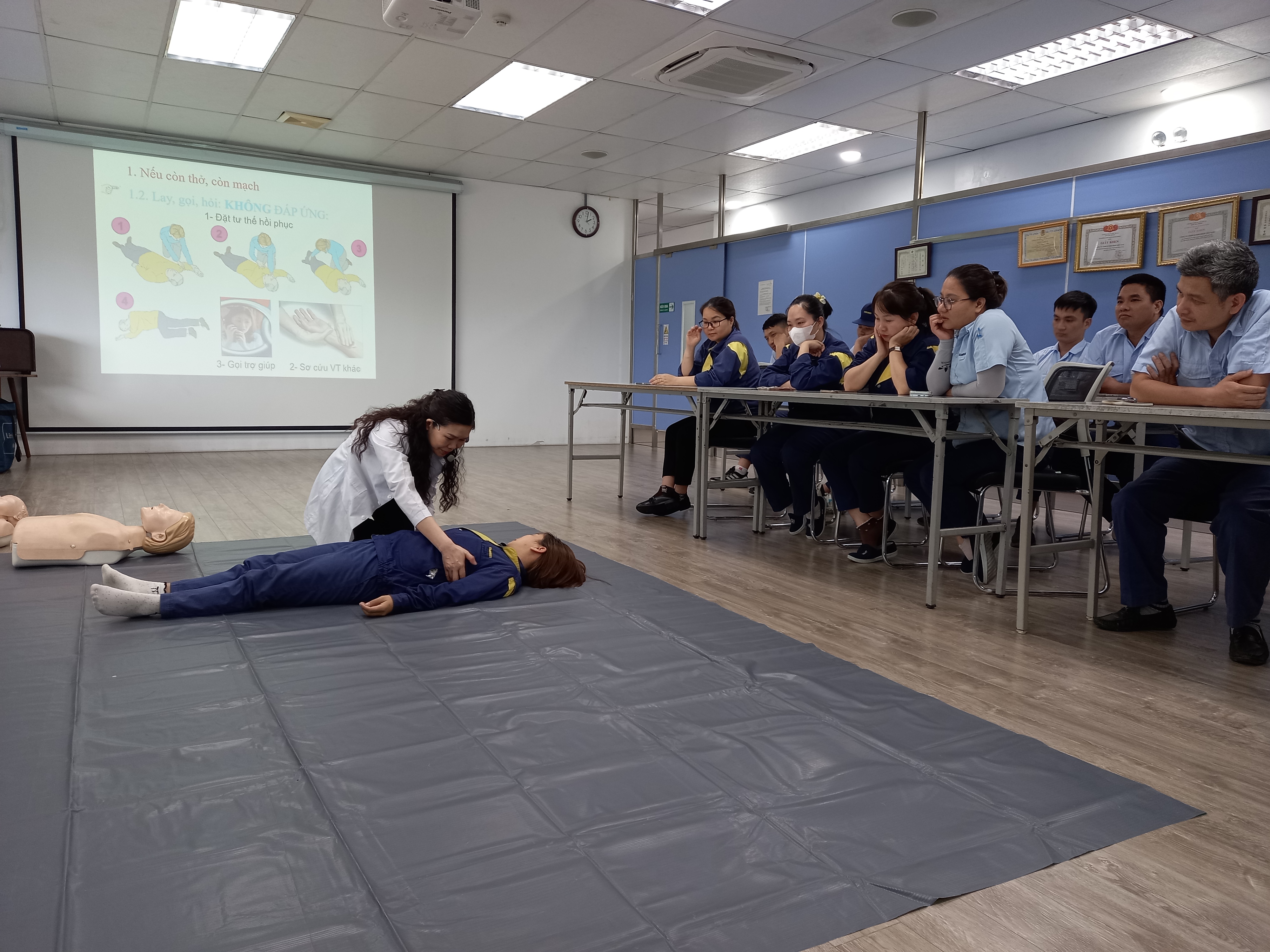 An toàn là một trong những vấn đề hàng đầu khi làm việc trong công ty. Chính vì vậy, để công nhân viên  hiểu rõ tầm quan trọng, hàng năm công ty luôn tổ chức đào tạo an toàn và sơ cấp cứu.