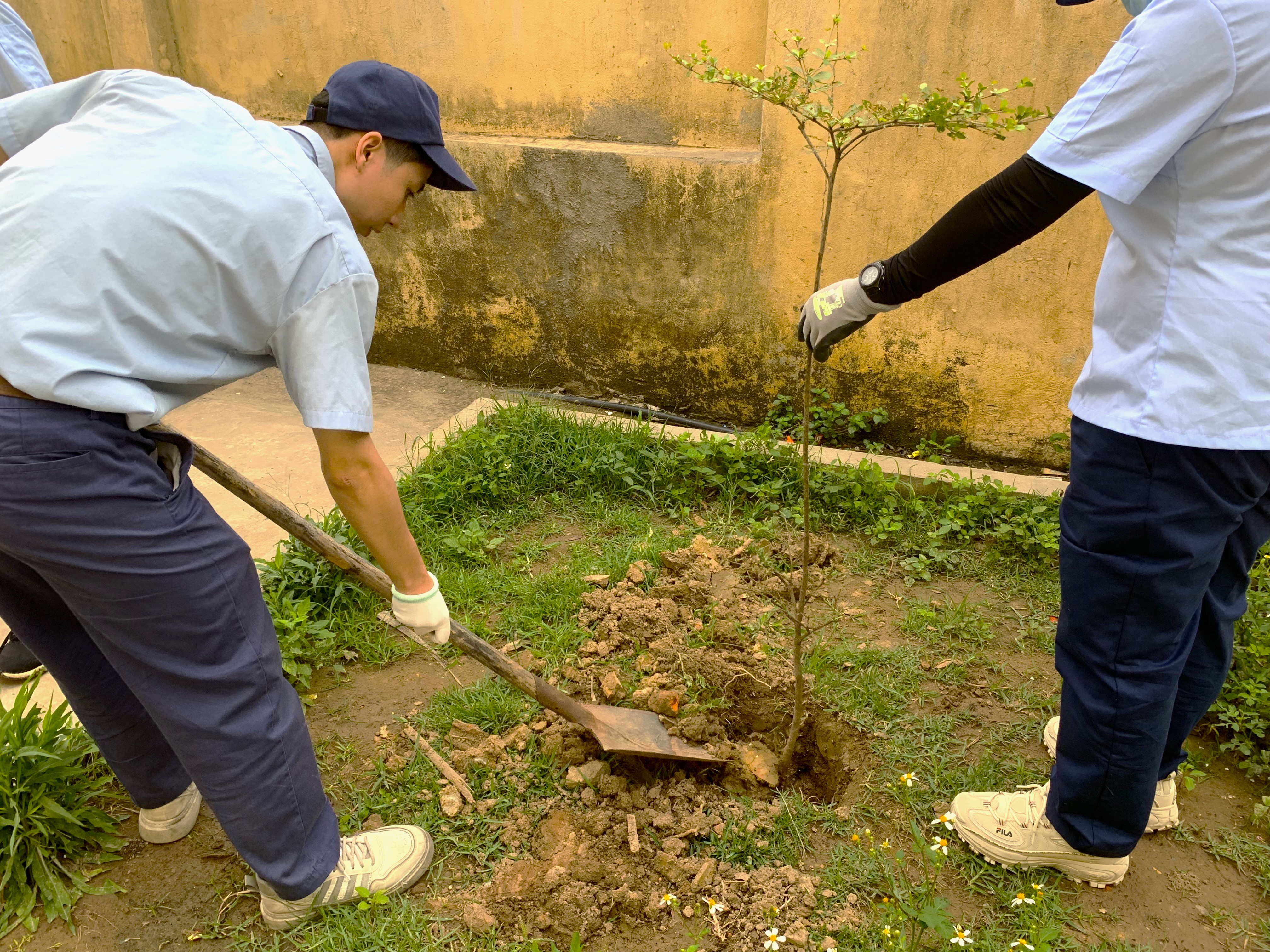 Thầy giáo có chia sẻ: "Sau trận bão Yagi năm ngoái, cây cối trong nhà trường bị ảnh hưởng, dẫn tới việc nơi bóng mát, vui chơi của các em học sinh bị mất đi. Đây là một món quà vô cùng ý nghĩa, nó khơi gợi tình yêu thiên nhiên, tinh thần trách nhiệm trong việc bảo vệ môi trường cho các bạn học sinh. Thầy và trò chúng tôi sẽ chăm sóc những cây xanh này ngày một lớn lên."